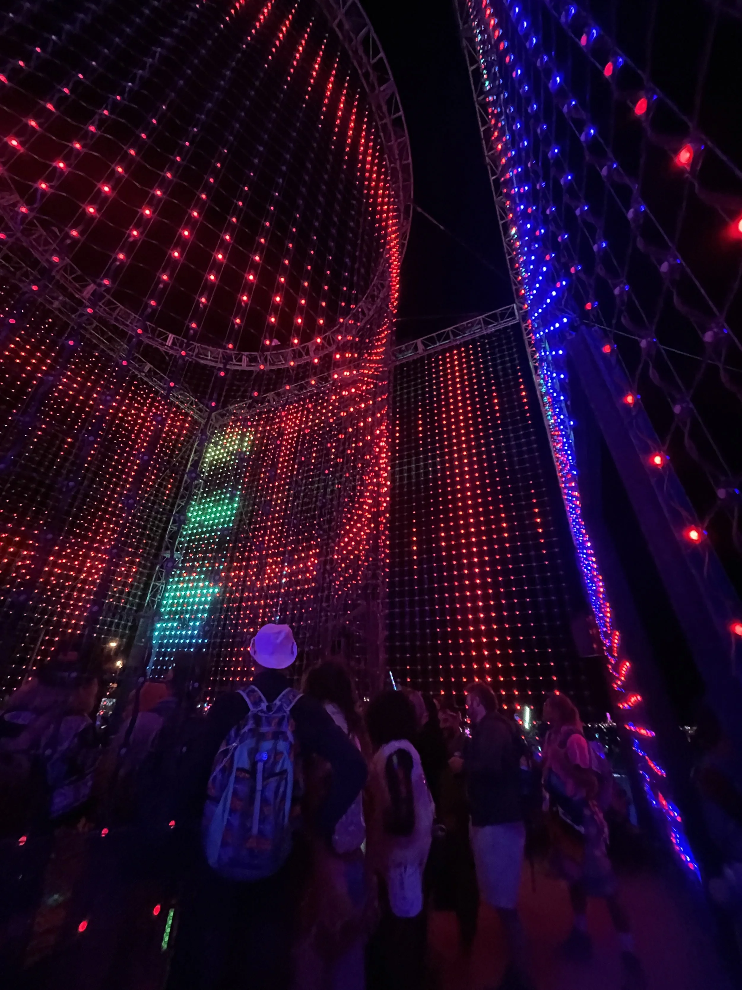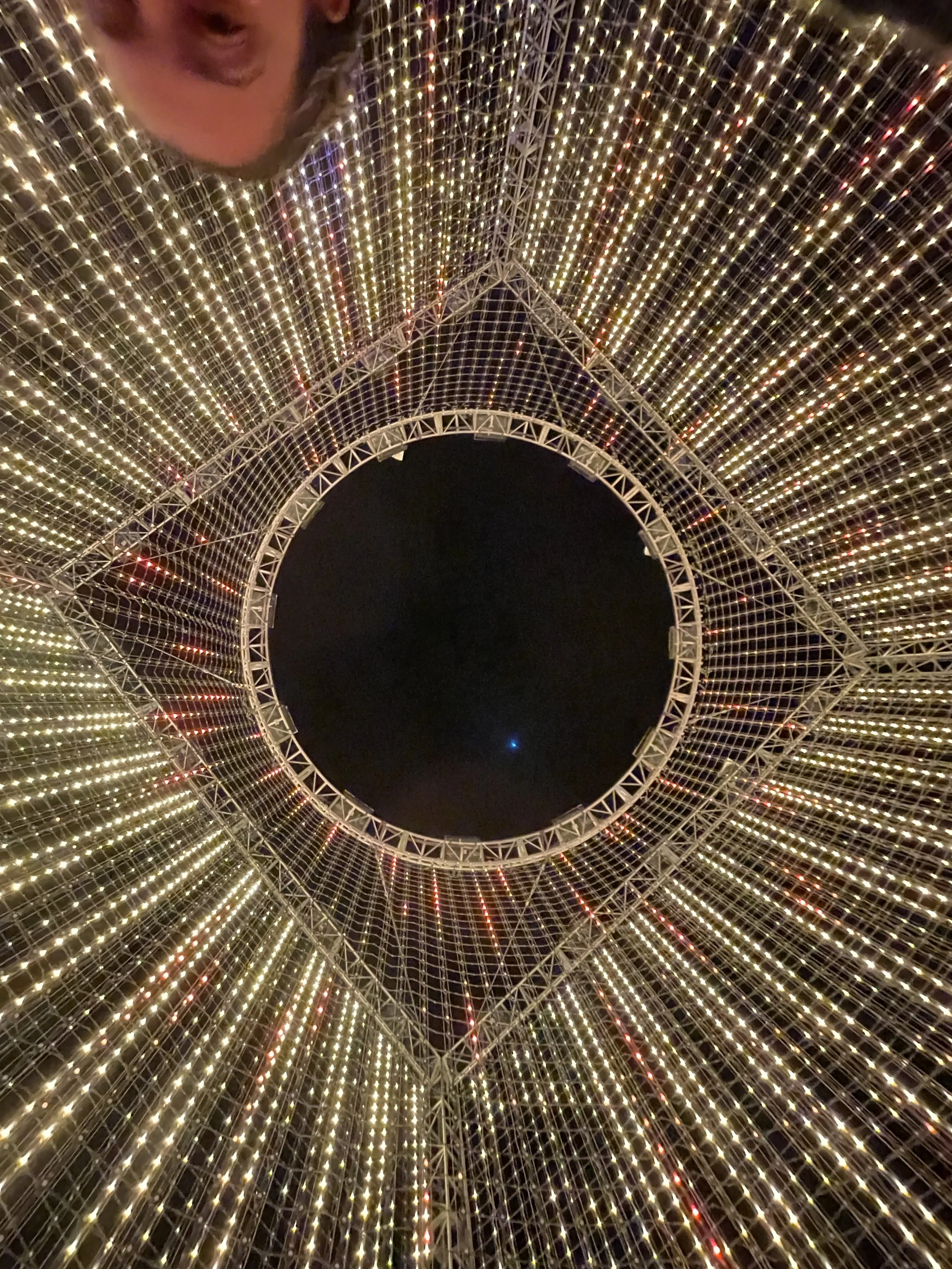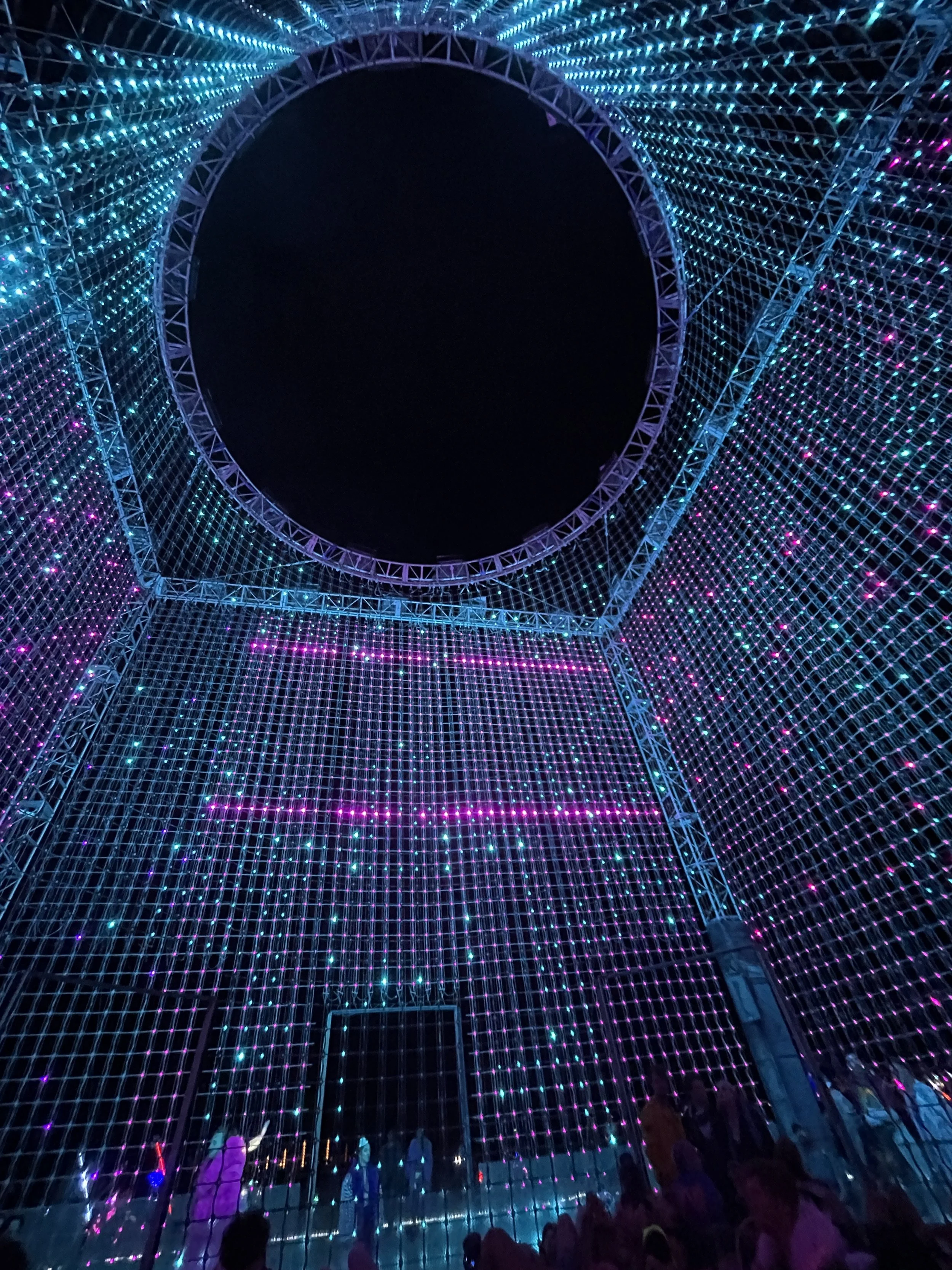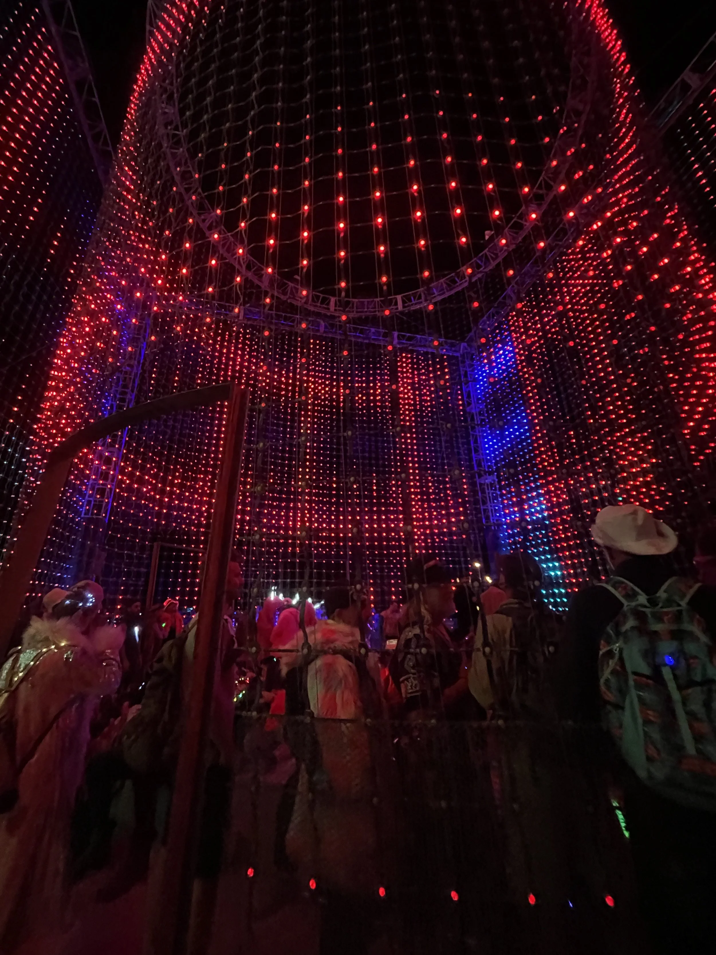 The structure was designed and orchestrated by Anthony Fieldman and is called Apotheneum the lighting software is called Chromatik and the composition would not have come together without the very very generous help of it’s developer Mark Slee.