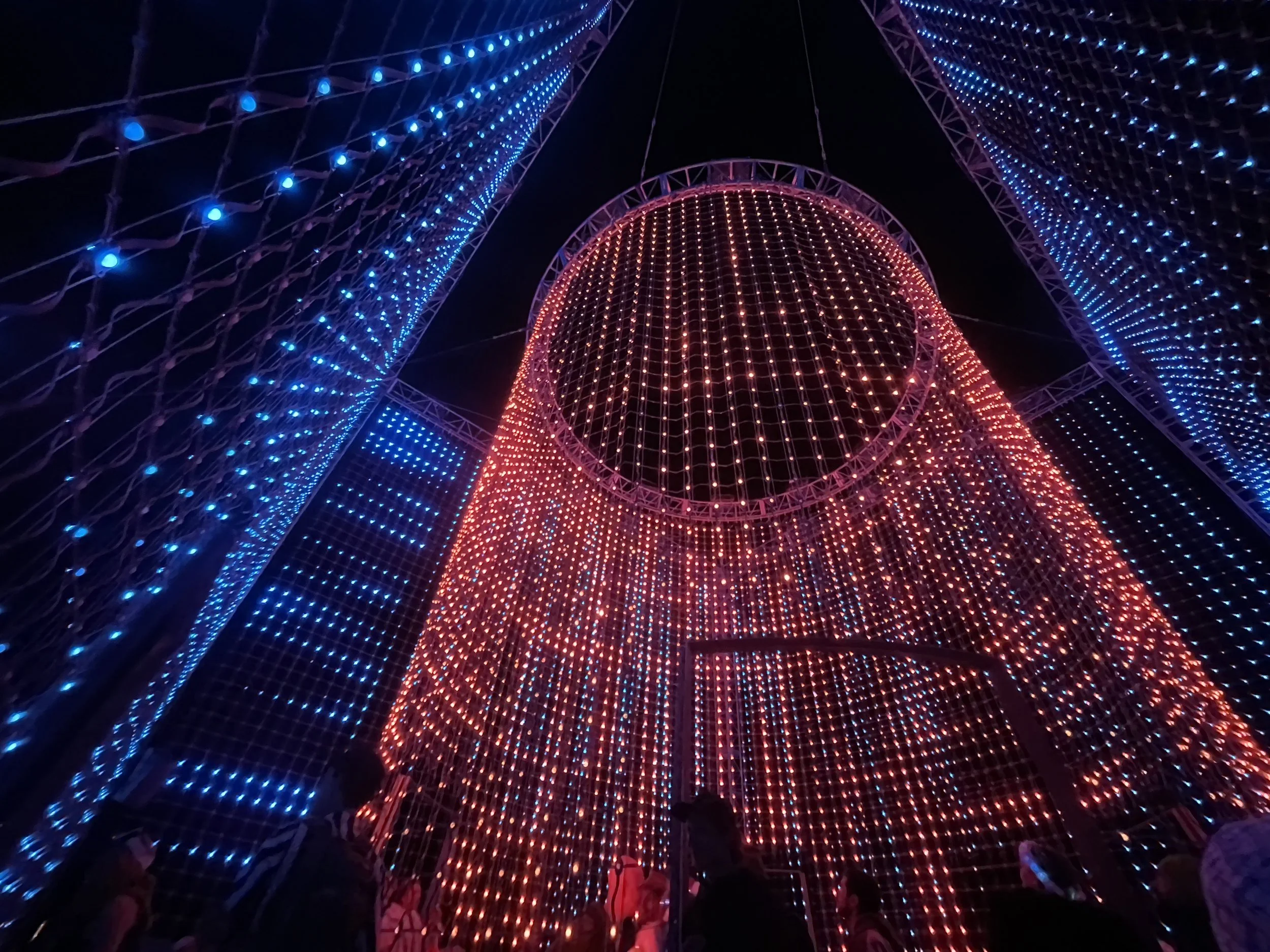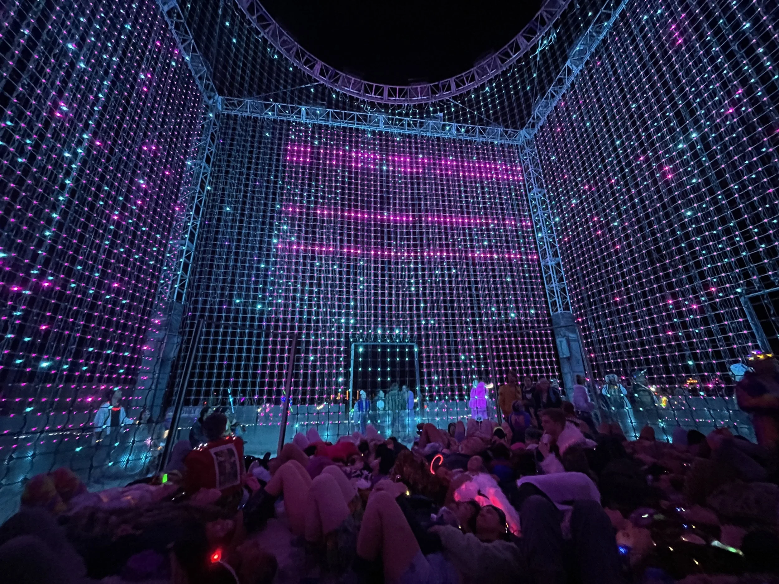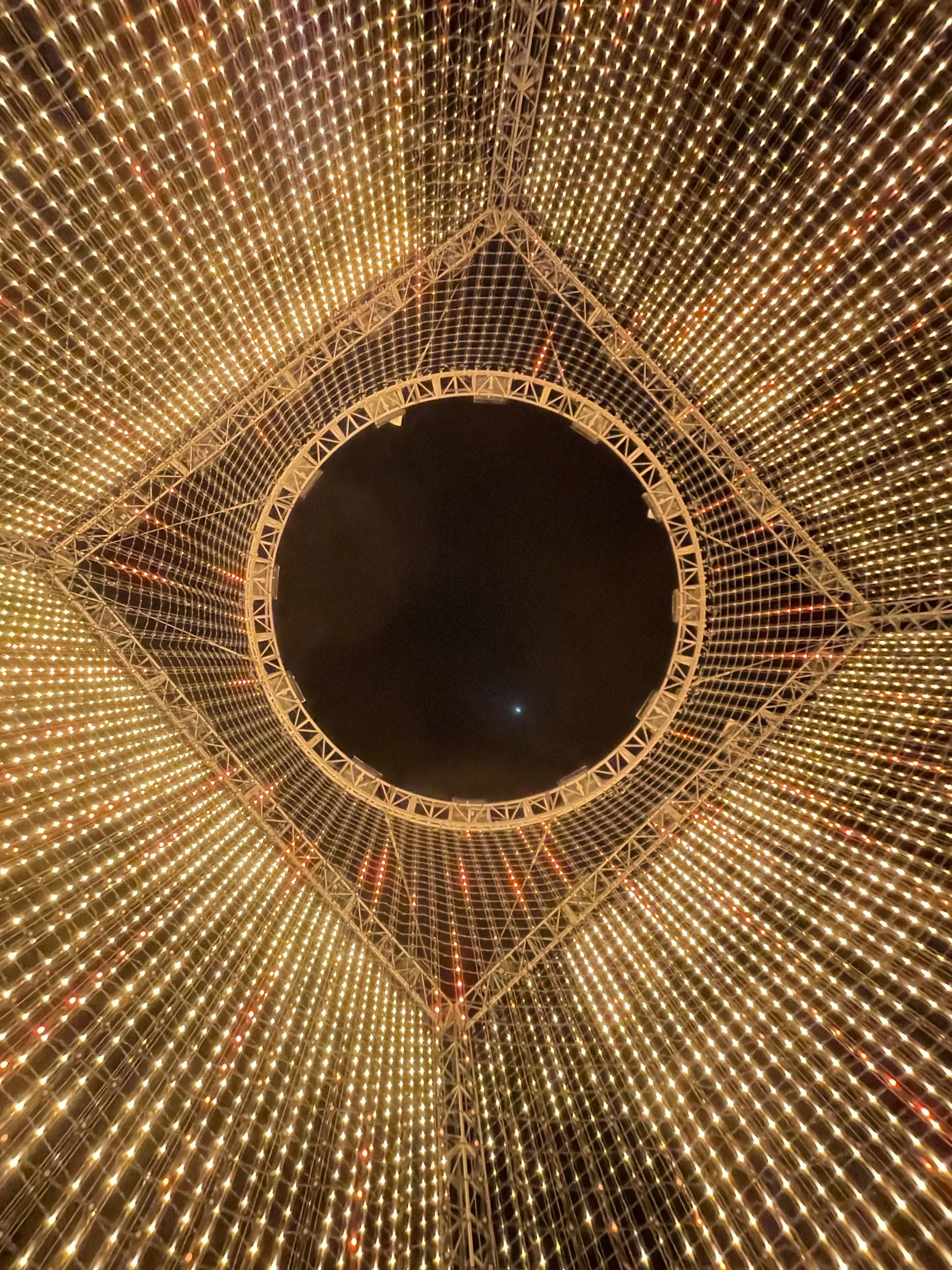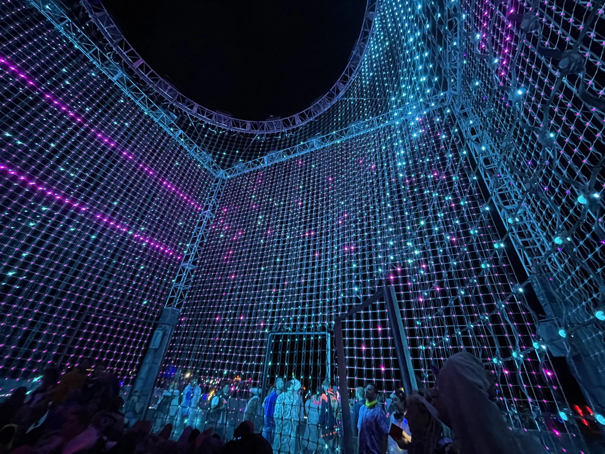 The structure was designed and orchestrated by Anthony Fieldman and is called Apotheneum the lighting software is called Chromatik and the composition would not have come together without the very very generous help of it’s developer Mark Slee.